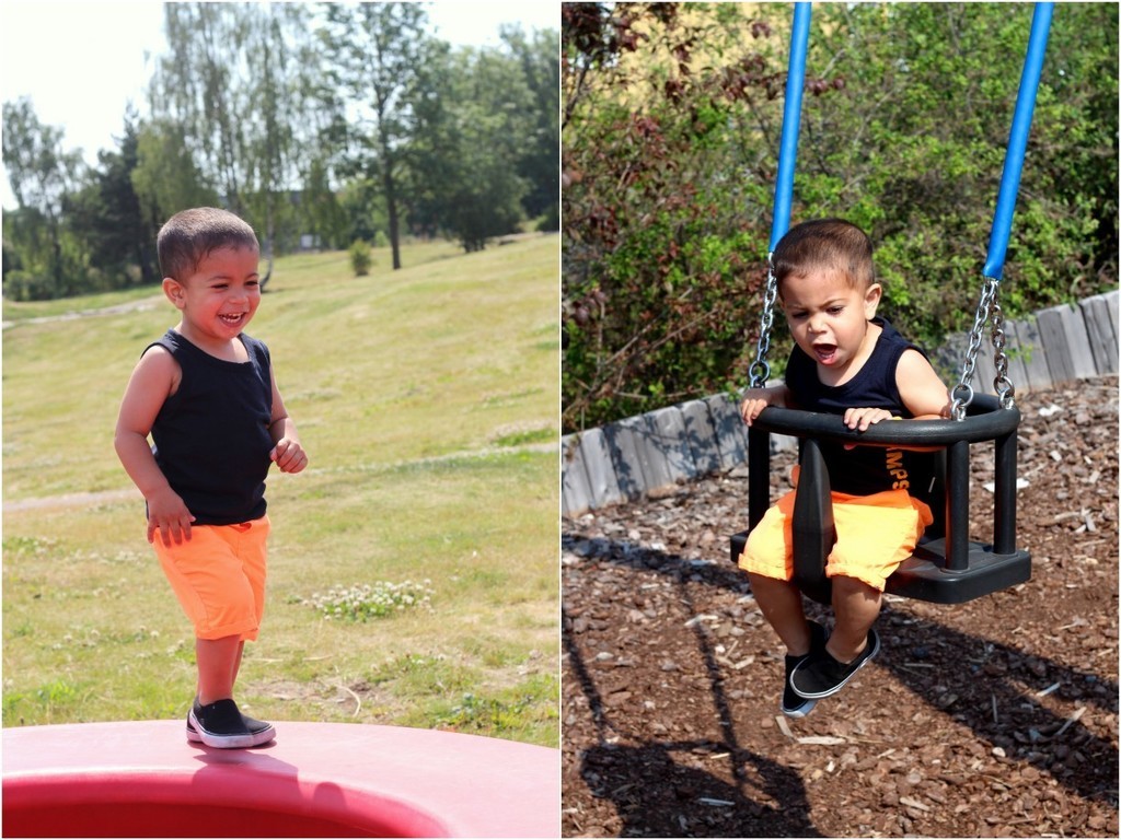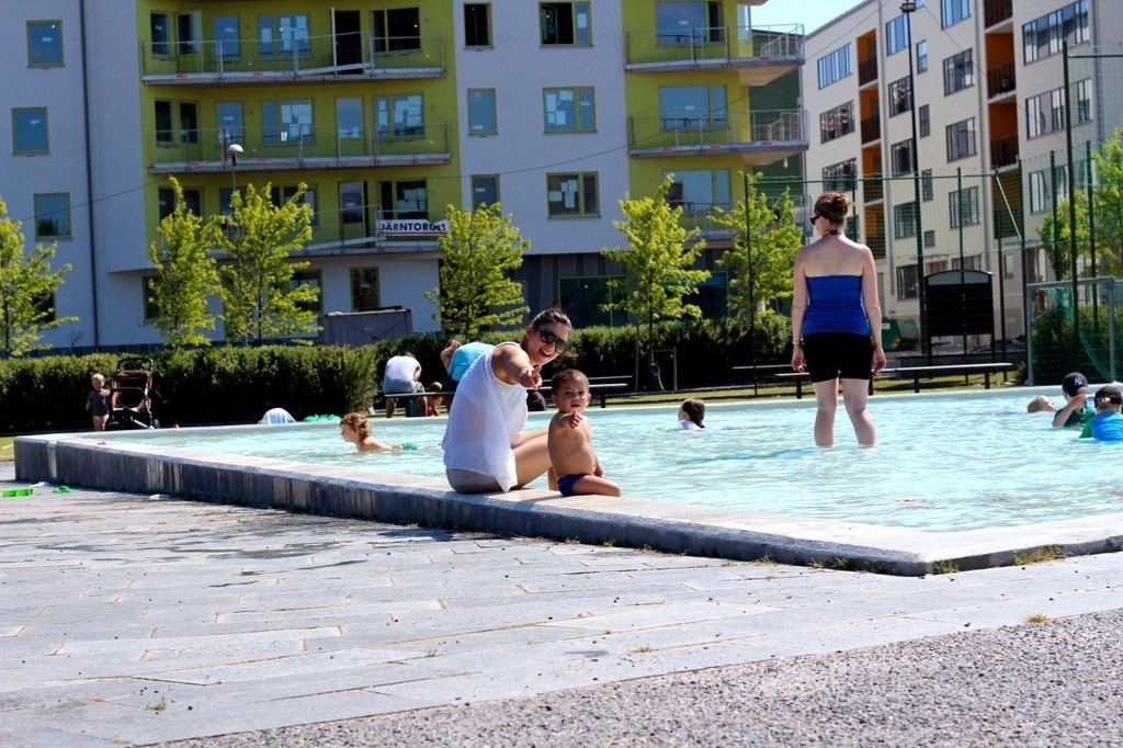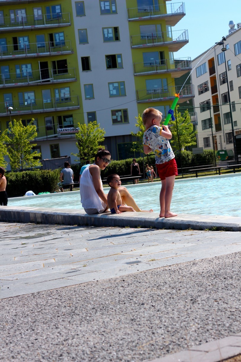 Vi badar utanför oss och leker. Vårt bostadsområde är verkligen guld och har allt man behöver. Vi har park, kiosk, barnpool, fotbollsplan, lekplats, grillplats, cafe och restaurang precis utanför oss. Snart byter Adrian förskola till en nyöppnad som även den kommer ligga utanför oss. Bekvämlighet deluxe kallar jag det men ändå kan jag inte låta bli att längta och drömma efter ett hus. Rech tycker vi ska flytta redan nu men jag vill vänta tills barnen är lite större. Den senaste tiden har jag träffat på många som flyttat från hus till lägenhet pg a att dem tyckte det var ensamt och väldigt jobbigt att sköta om ett hus. Någon med andra erfarenheter? Jag är en väldigt händig människa och tror inte att jag skulle tycka att det var jobbigt.