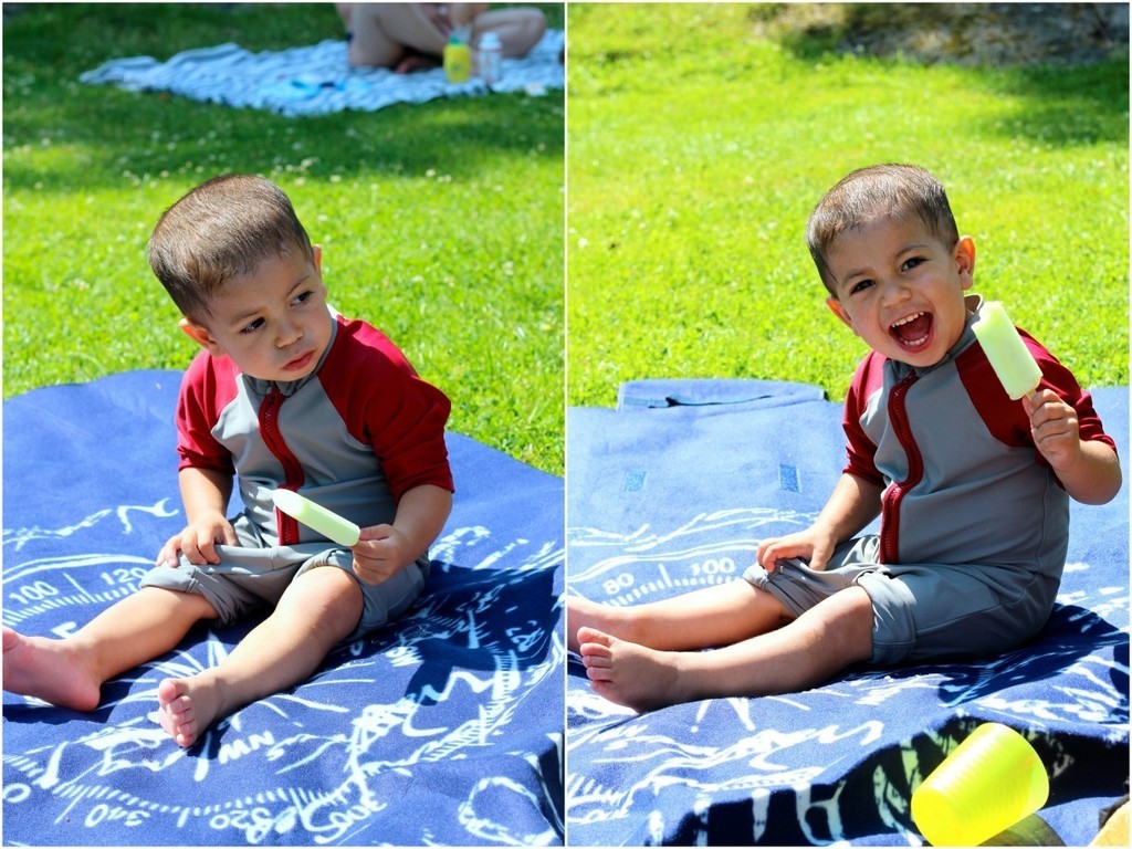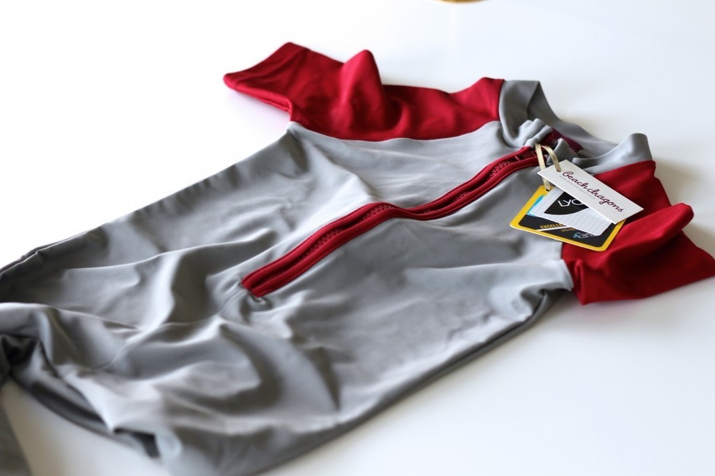 Vi fick hem en snygg UV-dräkt till Adrian från ett svenskt märke som heter Beachdragons. Dem tillverkar badkläder för barn med maximalt UV-skydd, UPF 50+. Det betyder att endast 1/50 av solens UVA och UVB-strålning går igenom tyget, 98% filtreras alltså bort. Dessutom är kläderna grymt snygga också!