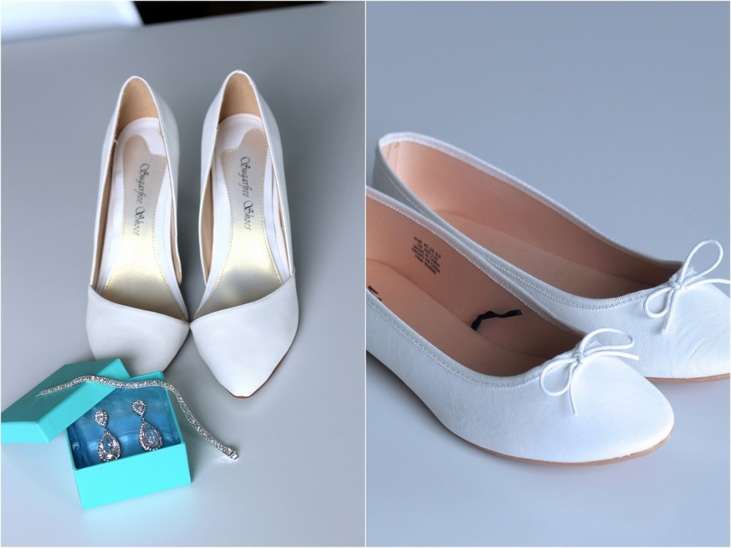 Örhängena kommer från USA, en utav tärnorna köpte dem till oss när hon var där. Armbandet kommer från bijoux och ballerina skorna från H&M 🙂