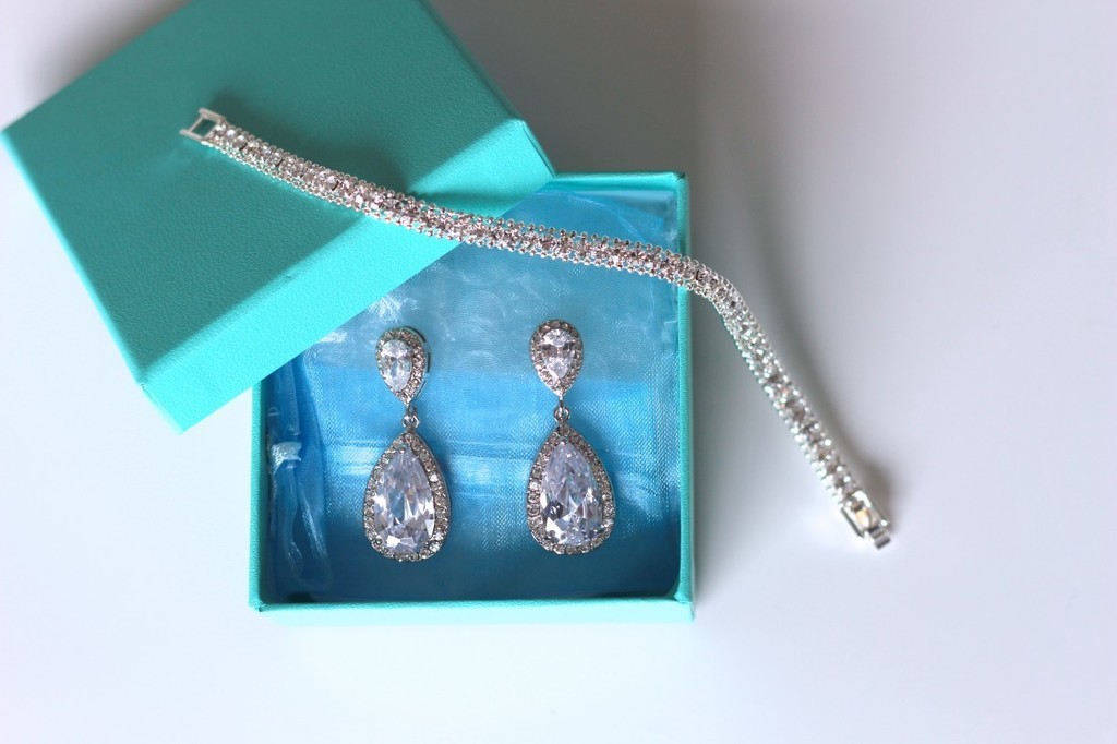 Varken örhängena eller armbandet går att fånga på bild. Smyckerna är så mycket finare i verkligheten