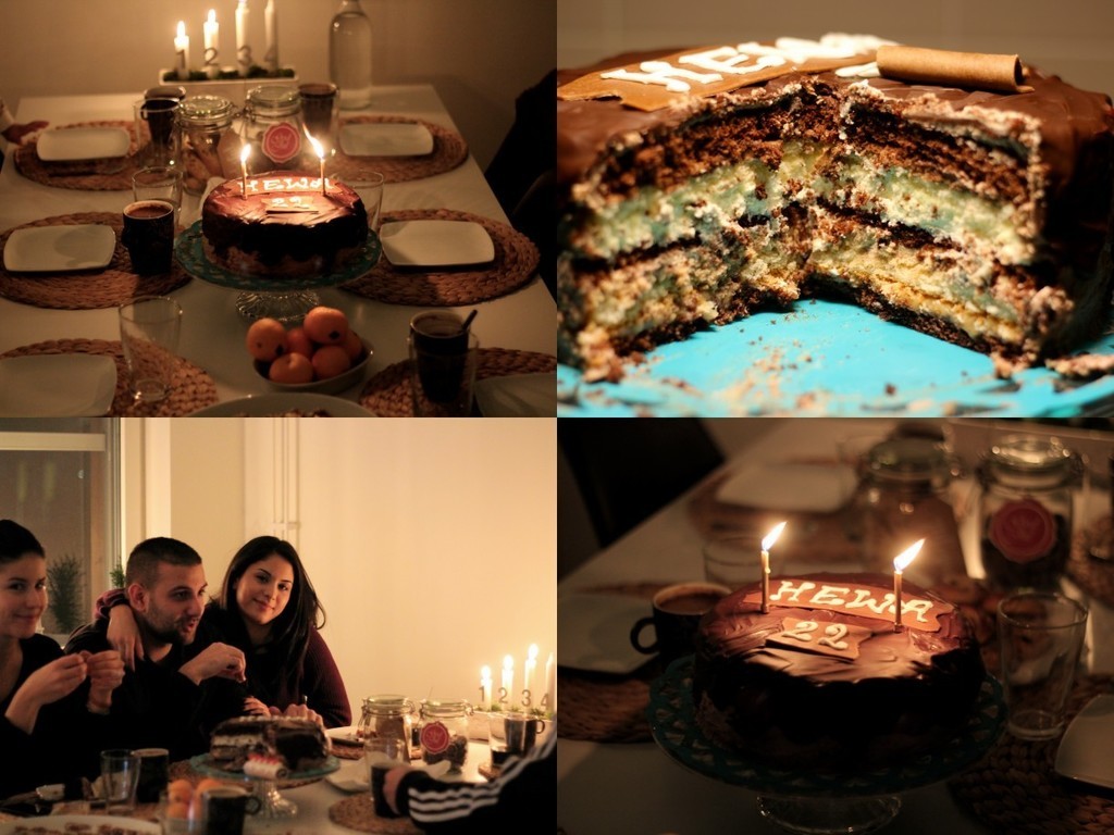 Jag och min andra svägerska Hawzin bakade tårtan som innehöll fyra olika fyllningar. Den får ett eget inlägg längre fram.