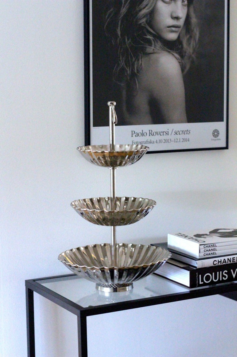 Mitt fina våningsfat som jag älskar står nu på glasbordet från Ikea
