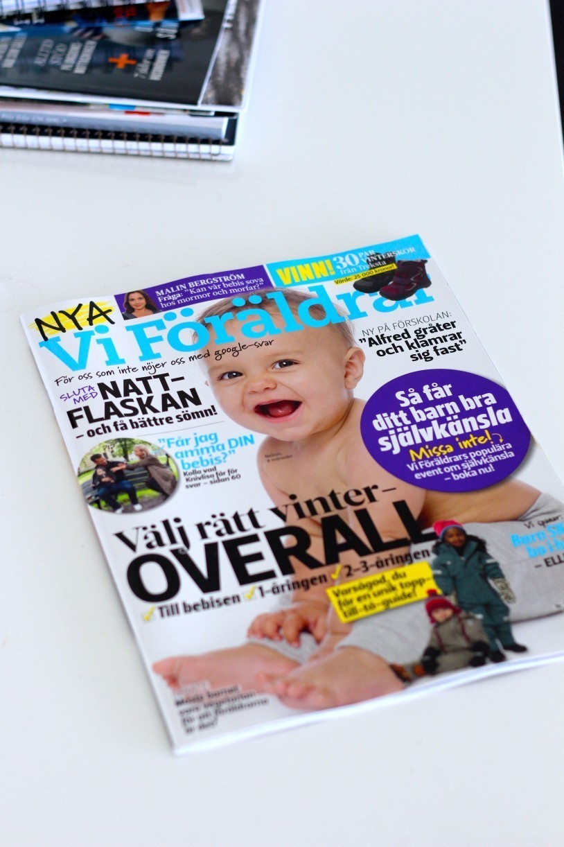Jag har suttit i soffan ända sen klockan nio och det har varit riktigt skönt att bara slappa. Passade på att bläddra i nya Vi föräldrar tidningen. I det här numret kan man läsa om hur man väljer rätt overall. Jag tycker det är knepigt det här med att välja bra vinterkläder men något jag vet är att man får det man betalar för. Därför är det bra att lägga lite extra slantar för att få kvalitet .