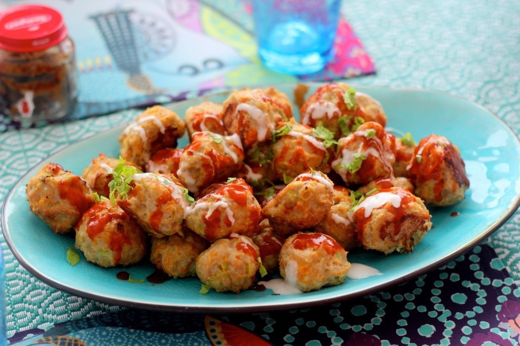 kycklingköttbullar med blomkålsmos fick vi till lunch och dom smakade så bra ! In på Sandras blogg för recept