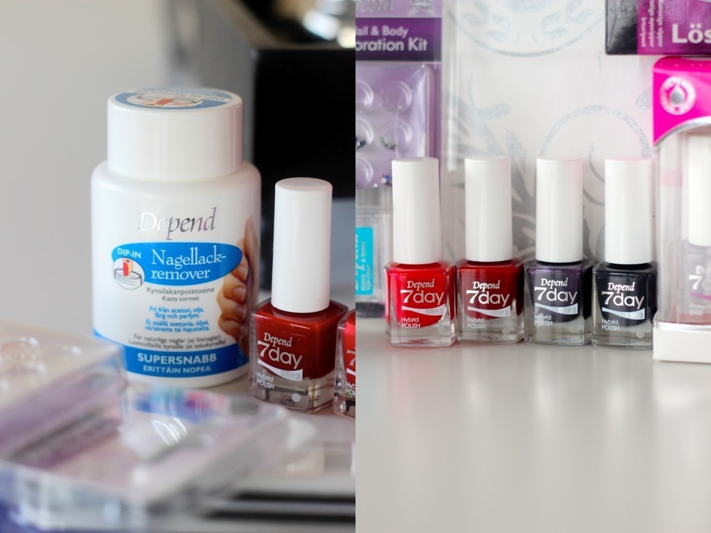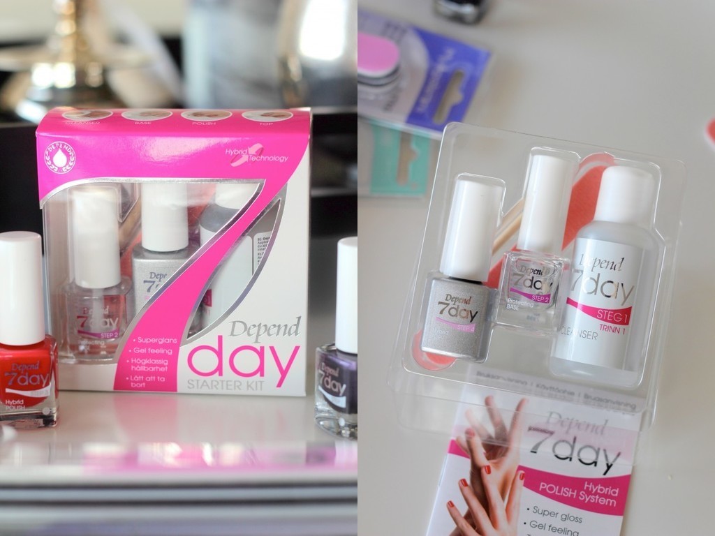 Depend 7day håller upp till en vecka och man tar enkelt bort nagellacket med Depend nagellackremover. Det är juh super bra eftersom man oftast vill byta färg efter en vecka. 7day härdar i normalt dags-/lampljus och alla steg är enkelt beskrivna i bruksanvisningen. Kostar endast 99 kr, det är helt galet!