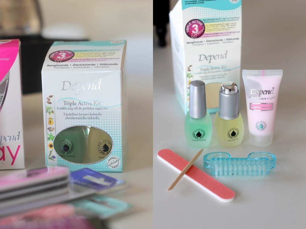 I den välfylla goodiebagen från onsdagens event med Depend & Gotlandgrill låg allt detta. Jag som älskar Depends gellack kit blev överlycklig över att höra att dom äntligen lanserar en ny liknande produkt dvs 7day