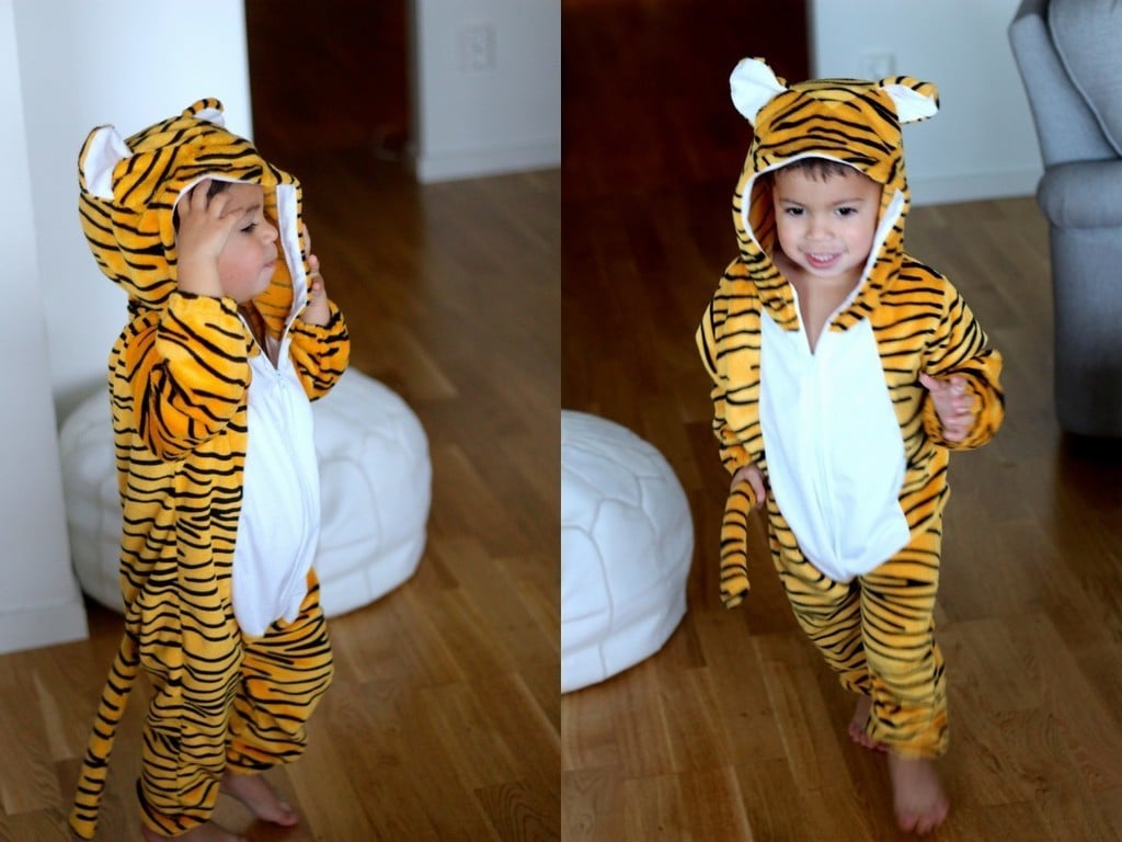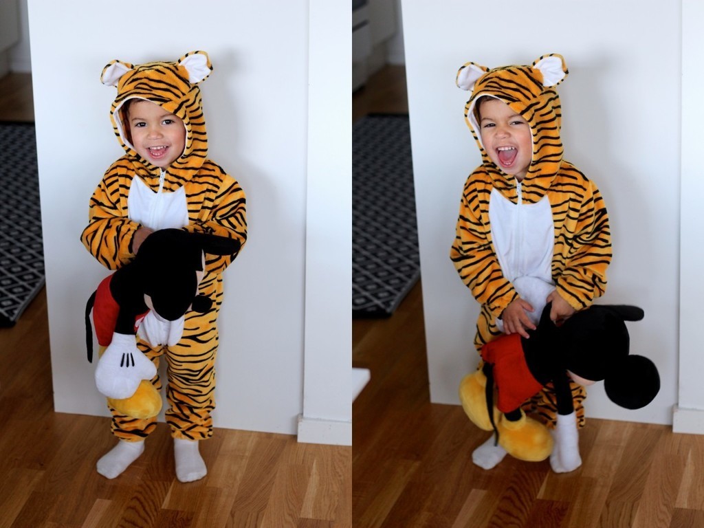 Min son Olle älskar djur och han skulle passa perfekt som tiger i den gulliga tigerdräkten:)