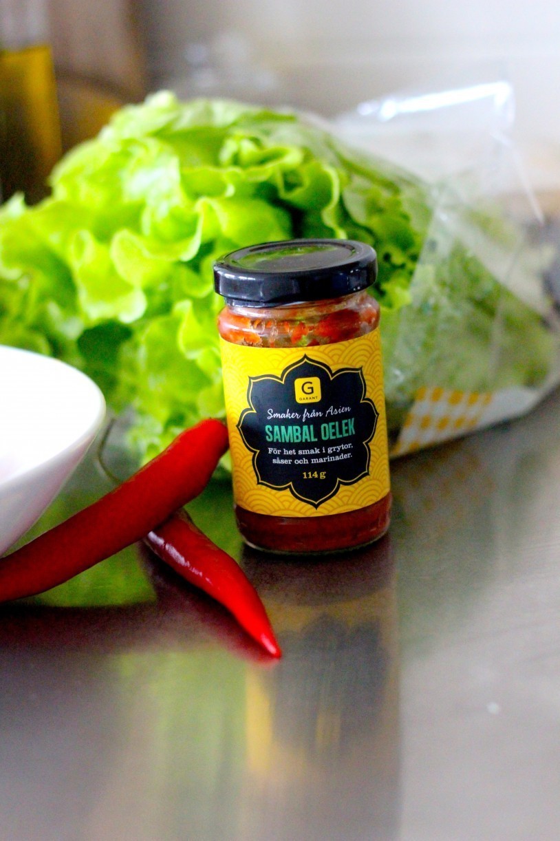 Koka pastan enligt anvisningar. Strimla bacon och salami. Stek bacon i en torr stekpanna och lägg åt sidan. Hacka purjolök, paprika och chili. Stek grönsakerna mjuka och häll tillbaka bacon. Blanda ner salami och stek någon minut. Blanda crème fraîche, grädde, vitlök, sambal, salt & peppar. Blanda ner med grönsakerna och köttet. Koka upp och låt puttra några minuter. Blanda ner riven parmesan och servera!