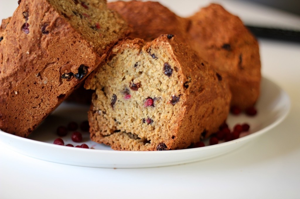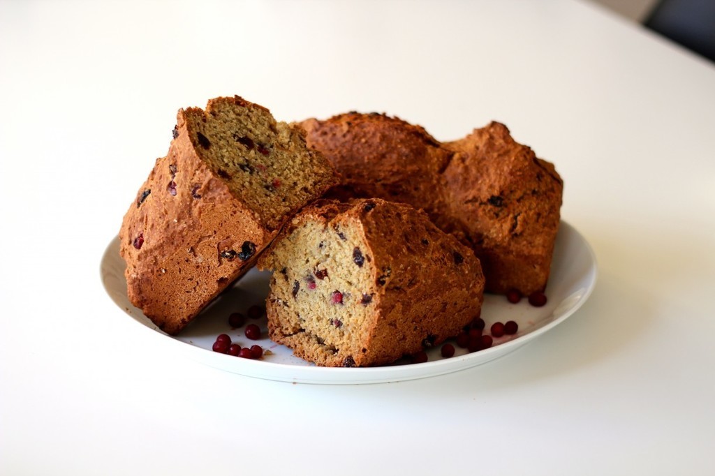 Sätt ugnen på 200°. Blanda alla torra ingredienser i en bunke. Rör i öl, gräddfil, sirap och lingon. Klicka ner smeten i en smord avlång bakform, ca 1 1/2 liter. Grädda i nedre delen av ugnen ca 50 min. Stjälp upp limpan och låt den kallna.