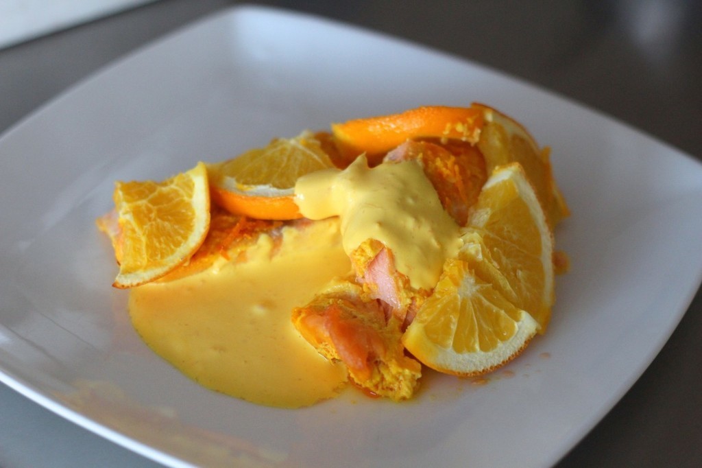 Sätt ugnen 175°. Lägg laxfilén i en ugnsform och salta. Riv apelsinskalet och blanda med lite pressad apelsinjuice. Blanda ned saffran. Häll över hälften utav blandningen på laxen och blanda ner resten med crème fraichen till en sås. Grilla laxen i ugnen ca 25-30 minuter. Servera med såsen!