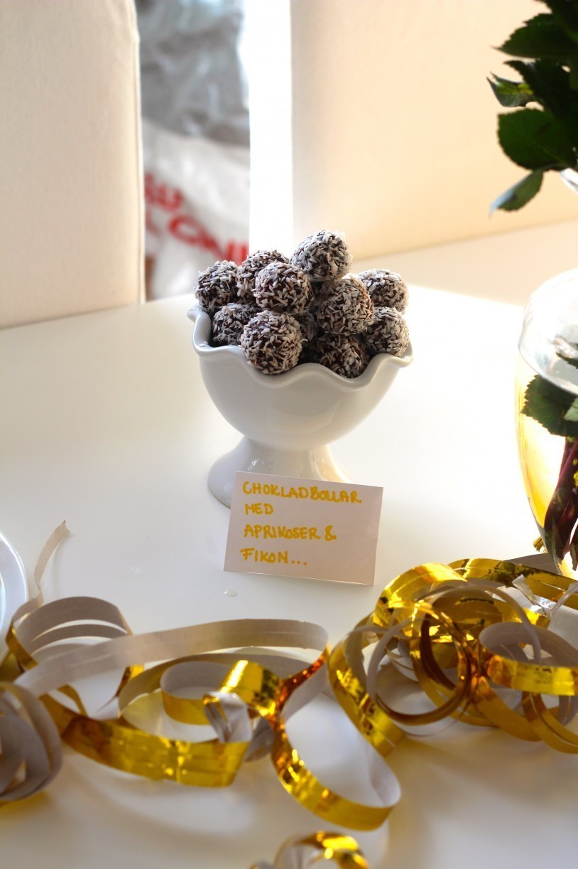 Skär bort knoppen på fikonen och mixa sedan med aprikoser, mandelmjöl, kokosfett/kokosolja och kakao i en mixer eller matberedare. Häll på kaffet och mixa tills smeten är jämn. Rulla till bollar som du sedan rullar i kokos och ställ kylskåpskallt en stund.