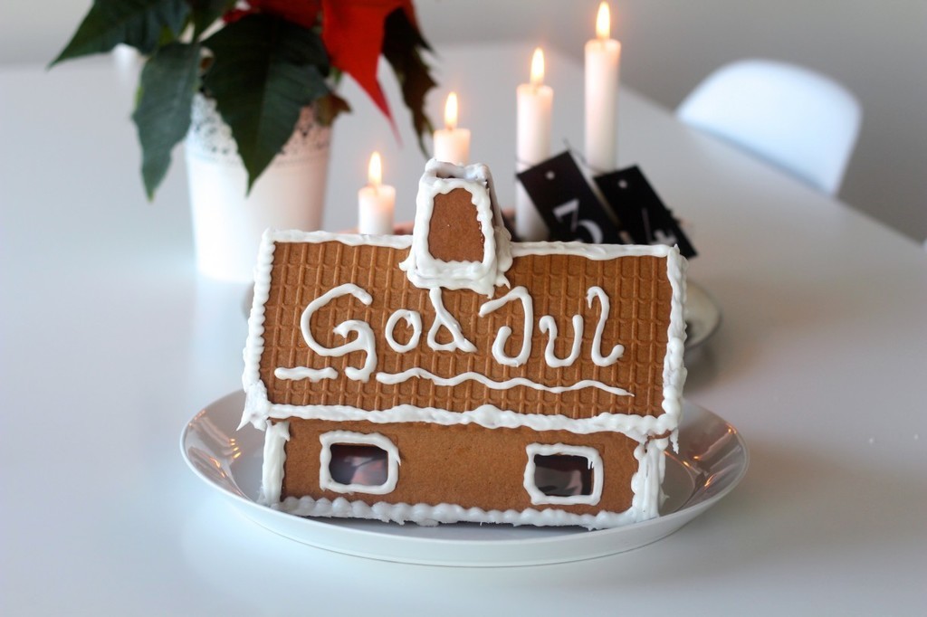 Igår gjorde vi äntligen slag i saken och monterade ihop pepparkakshuset och nu ska ni få höra. Jag brände mig inte en endaste gång i år på det förbaskade sockret. Mirakel!