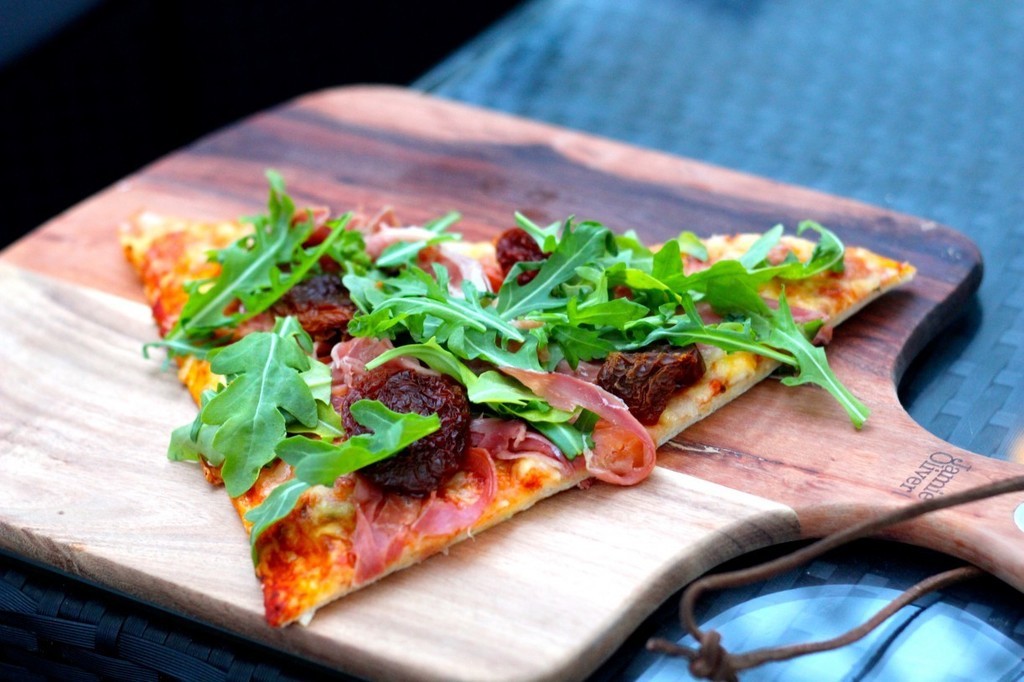 När den var färdig la jag på soltorkade tomater, serranoskinka och ruccola. Så gott!