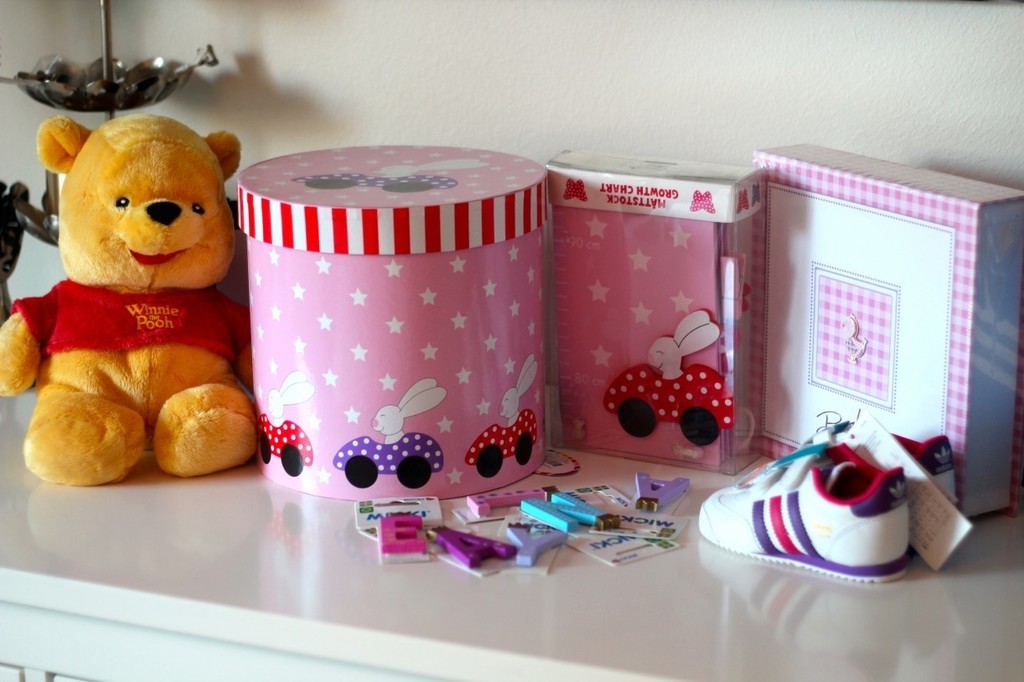 En utav Rechens vänner har fått en liten flicka så jag har handlat lite välkommen till världen presenter och satt ihop ett litet paket, det är så mycket roligare att handla till flickor.