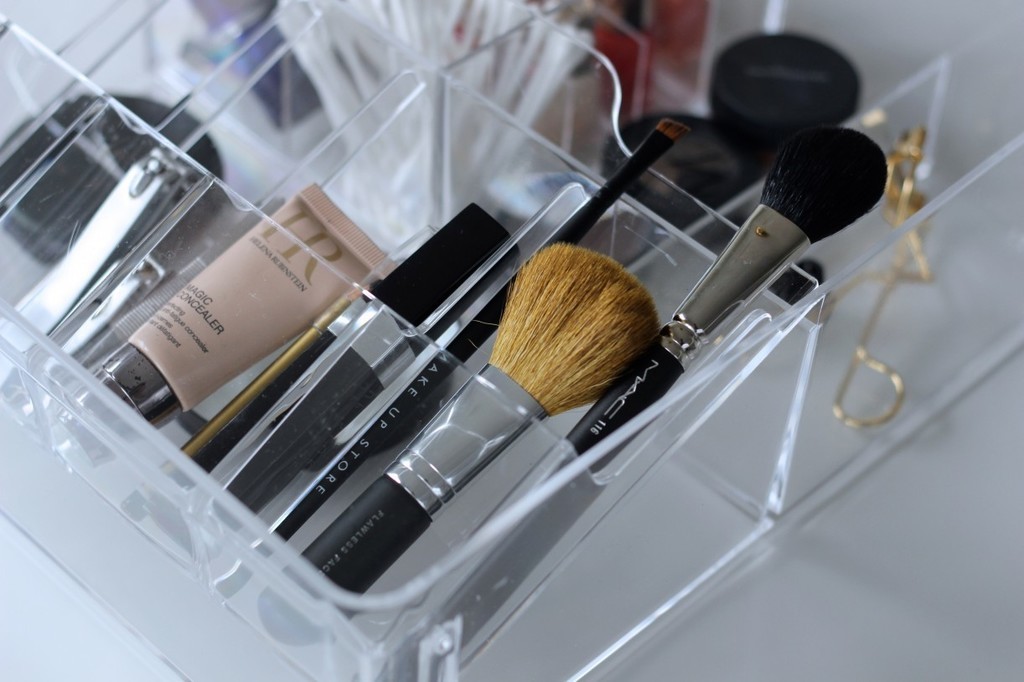 Mac rouge borste, Id bare minerals puder borste, make up stores brynborste, chanel mascara, kajal, Helena Rubenstein concealer