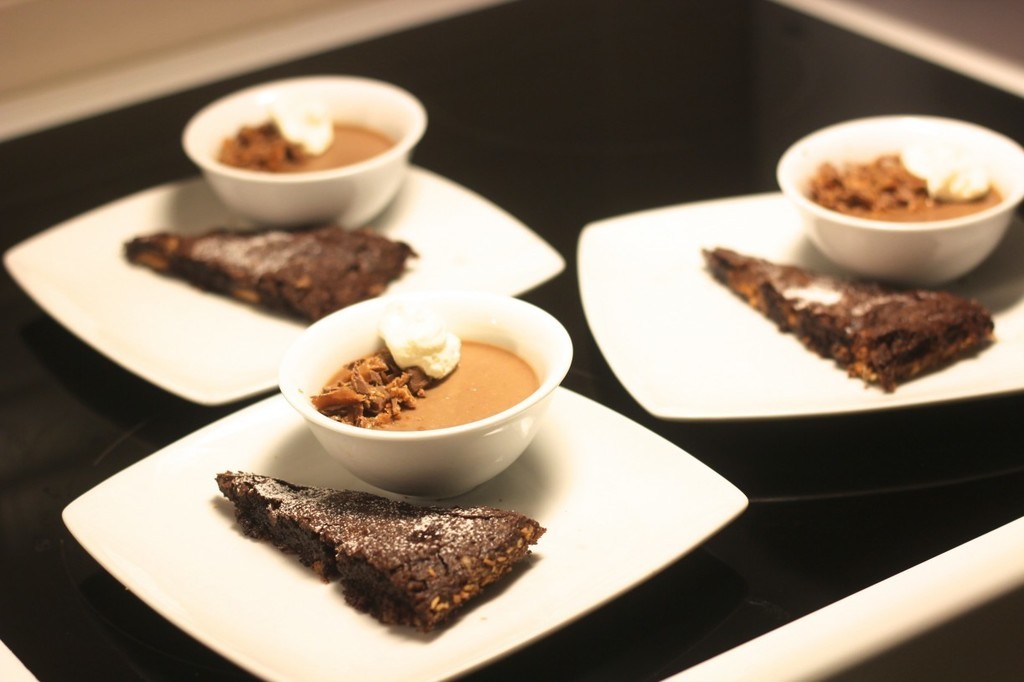 Mjölkchoklad pannacotta med daim kross och dumle kladdkaka