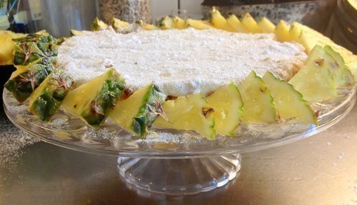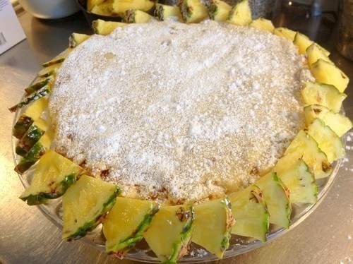 Sätt ugnen på 175°. Hacka chokladen. Smält smöret och rör ner chokladen. Rör om tills den har smält. Vispa ägg och socker poröst. Rör i mjöl och smör/chokladblandningen. Häl i en bröad form och grädda i nedre delen utav ugnen 30-35 minuter. Låt kakan kallna och ställ i kylen. Hacka chokladen till glasyren och koka upp grädden. Ta från plattan och rör ner chokladen. Rör om tills allt har smält och låt sedan stelna fem minuter i kylen. Bred glasyren över kakan och låt stelna i kylen. Sikta över florsocker om du vill.
